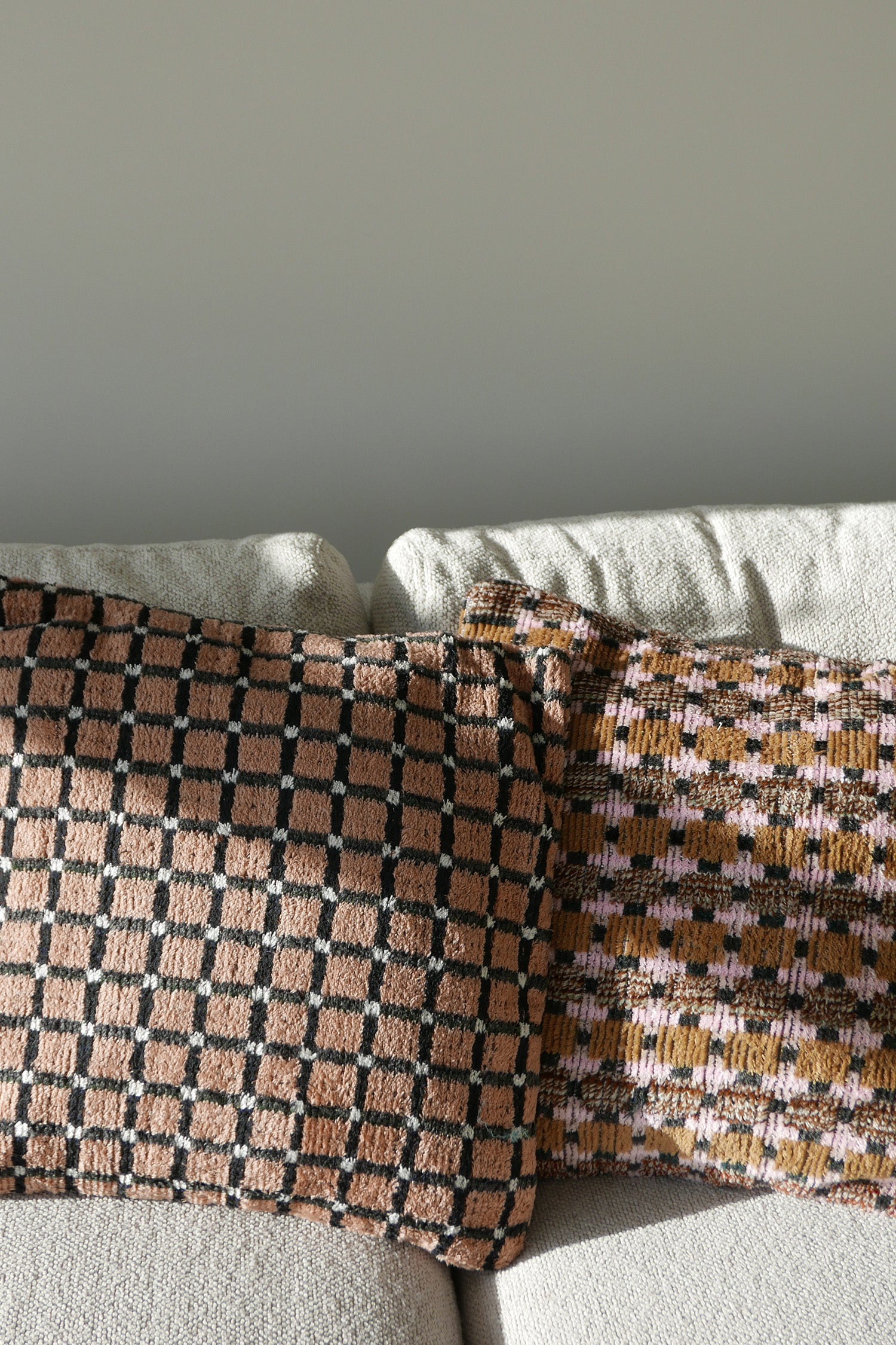 These cushions are expertly made from handwoven fabric using yarn in a range of colours. Skilled makers weave the yarn according to their own style and taste, resulting in unique pieces where no two are alike. Each item is created individually, so the patterns and tones vary, giving every cushion its own look.